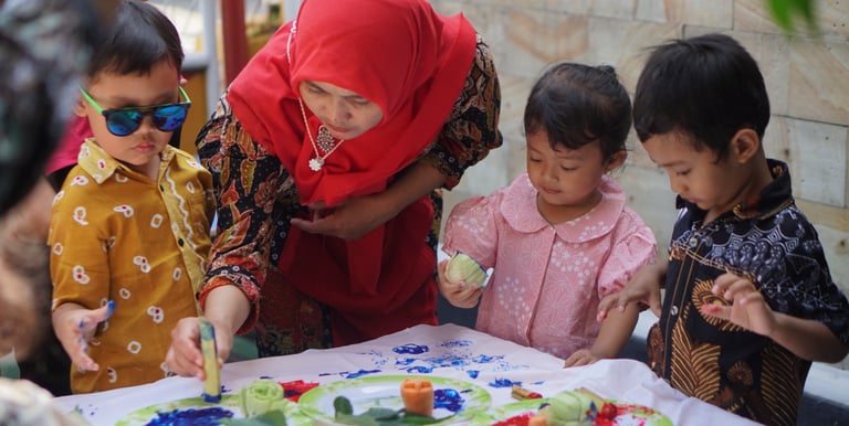 Pengantar pembelajaran yang aman dan menarik, berfokus pada sosialisasi, kreativitas, dan keterampilan motorik dasar.