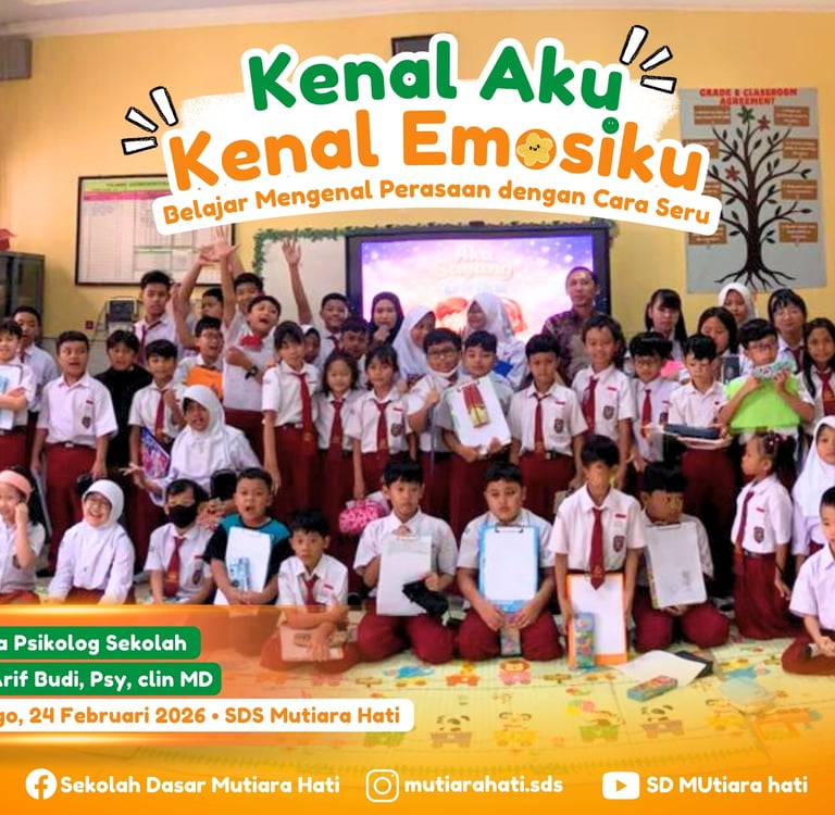 Pada 24 Februari 2026, SDS Mutiara Hati Ponorogo menyelenggarakan kegiatan Psychologist Goes to School dengan tema Kenali Dirimu, Kenali Emosimu. Kegiatan ini merupakan bagian dari program pendampingan perkembangan anak yang bertujuan mendukung kesehatan mental dan pembentukan karakter siswa sekolah dasar.